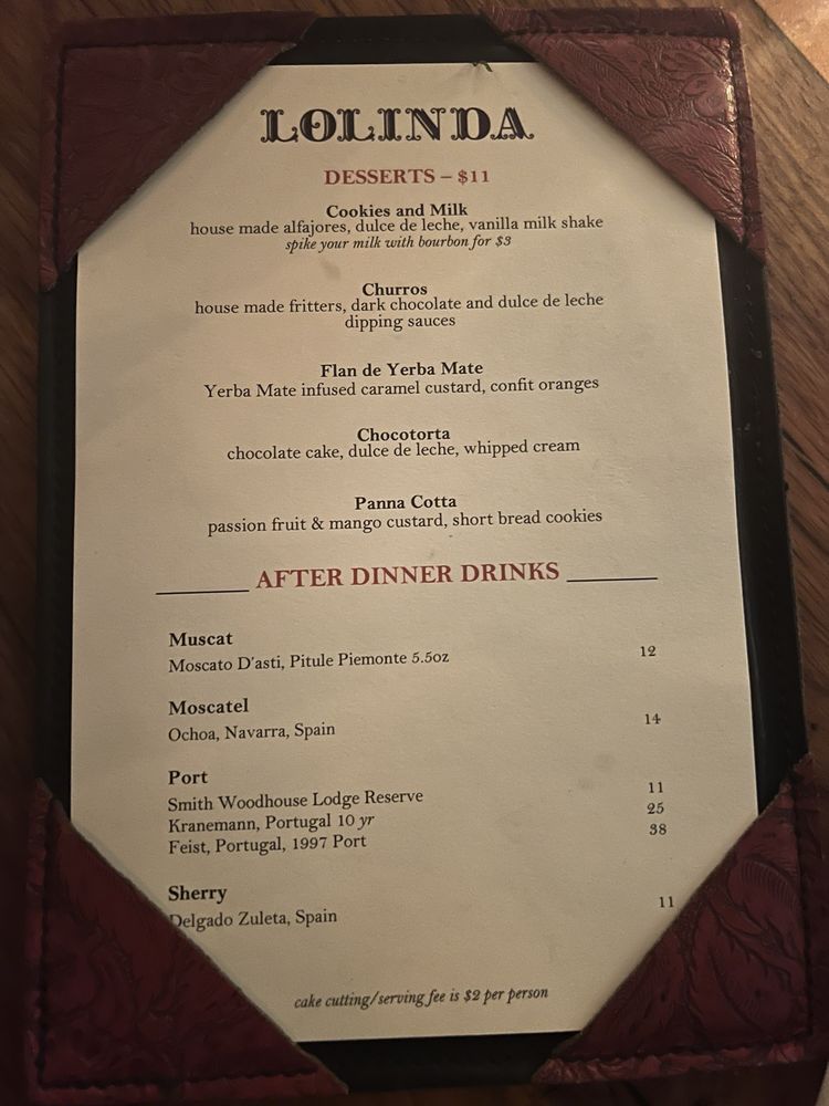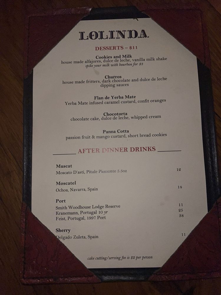 Lolinda Menu